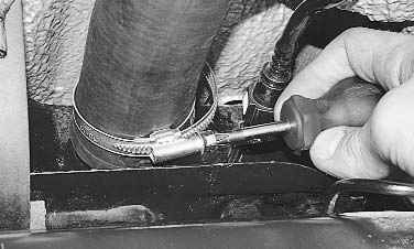 5. Ослабьте затяжку хомута крепления воздухоотводящего шланга…