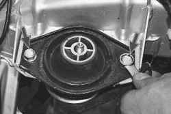 Подушку опоры устанавливайте, сориентировав ее конусной частью вверх, а вырезом в сторону передней части автомобиля.