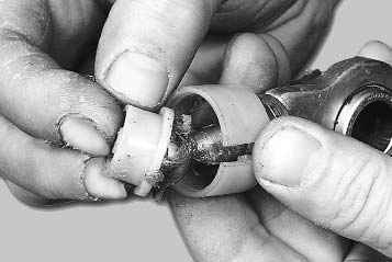 7. …и пластмассовый упор оси. Замените детали, если они сломаны или на них заметны следы износа.