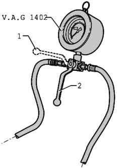 При холостых оборотах двигателя закрыть запорный клапан не более, чем на 5 с(позиция 1) и считать давление ( рис. 5.20).